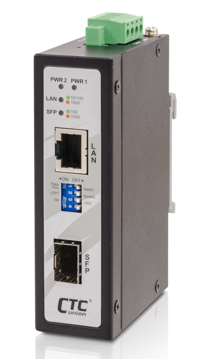 Supports Dual Rate (100/1000) SFP for selectable Fast or Gigabit speed on fiber